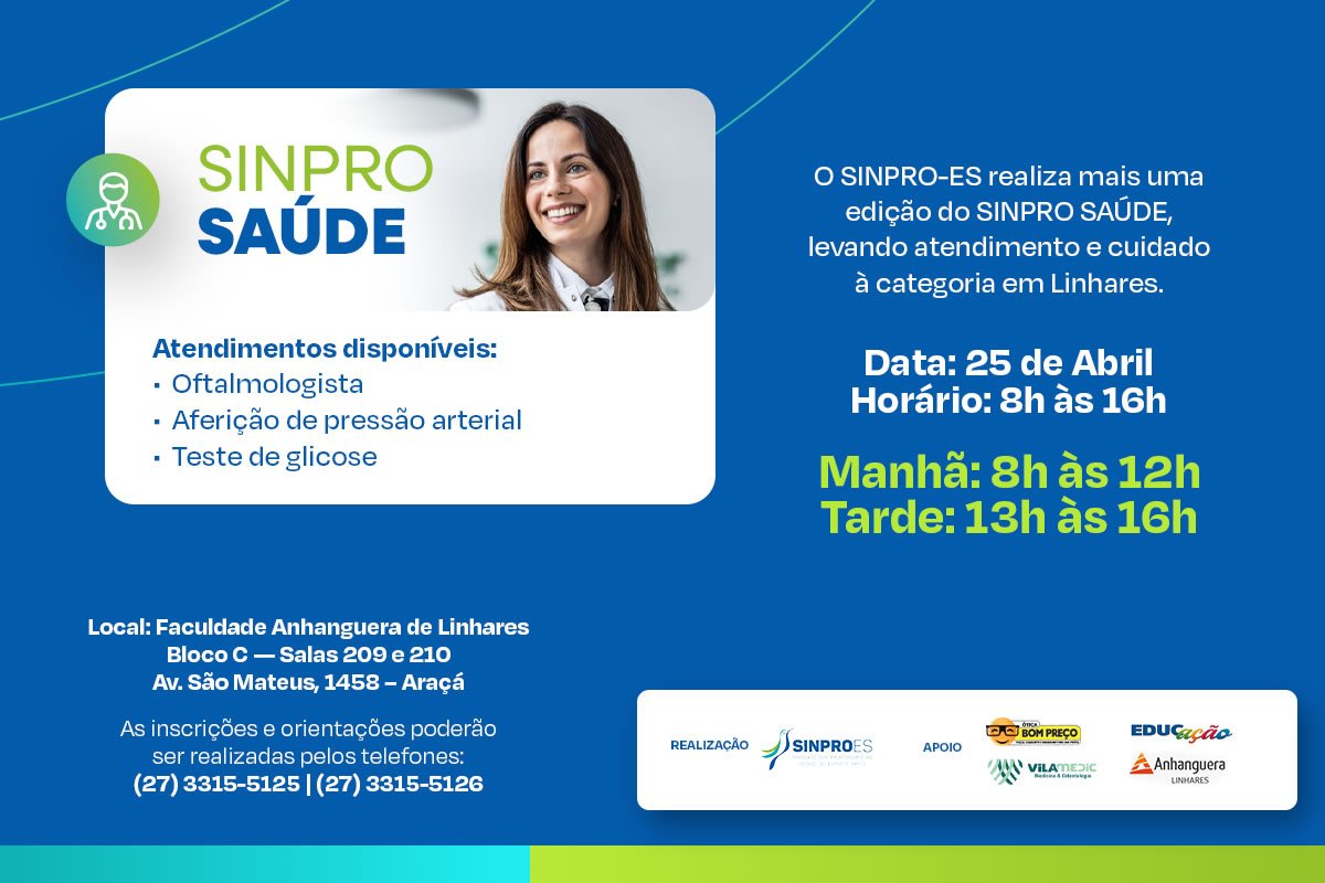O Sindicato dos Professores no Estado do Espírito Santo (SINPRO-ES) realiza mais uma edição do SINPRO Saúde, iniciativa voltada ao cuidado e à promoção da saúde dos profissionais da educação. A ação acontecerá no município de Linhares e reforça o compromisso da entidade com a qualidade de vida da categoria.